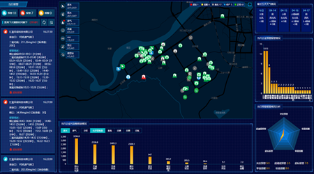 运用地理信息和可视化技术,多方位、多层次、多角度分析环境监测数据,实现预警、专题、分析、应急等业务数据的可视化展现。